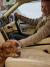 Hubert de Pelet and his dog seen through the front window of his Bentley Arnage T.